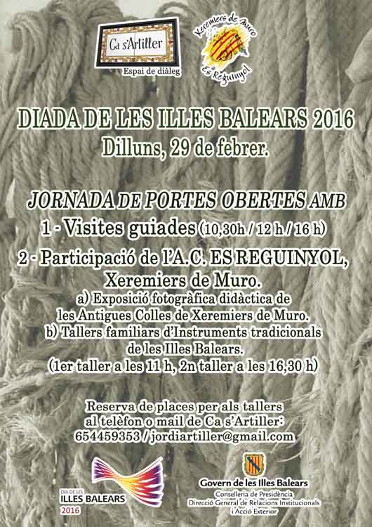 Dilluns, dia 29 de febrer, en el marc de la Diada de les Illes Balears i patrocinat per la Conselleria de Presidència del Govern Balear, a proposta del Centre Cultural ca s’Artiller, Espai de Diàleg, de Muro, l’A.C. Es Reguinyol, Xeremiers de Muro han fet un exposició fotogràfica i didàctica dels antics xeremiers de Muro i la Represa actual.